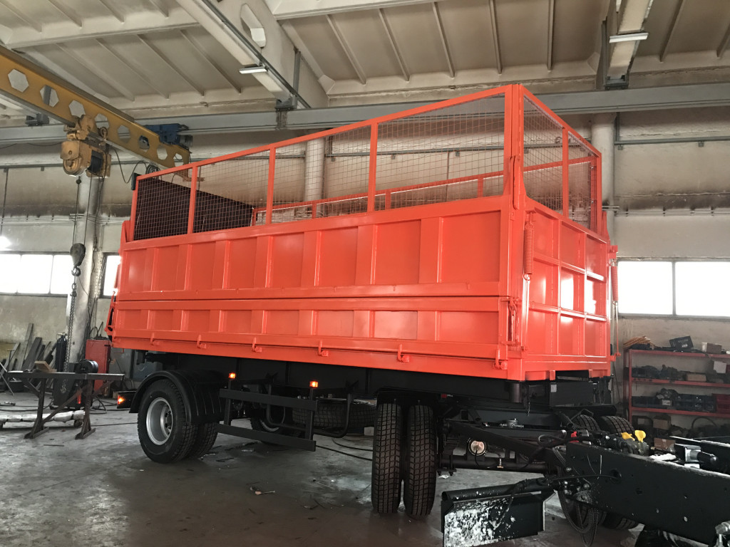 Платформа самосвальная, стальная. Ручное запирание бортов, верхний ряд боковых бортов подвижный с верхней навеской, нижний ряд боковых бортов стальной подвижный с нижней навеской. Надставка в виде сетки 1000мм. Исполнение задней части: верхний борт подвижный с верхней навеской, нижний борт подвижный с нижней навеской. Пол стальной.