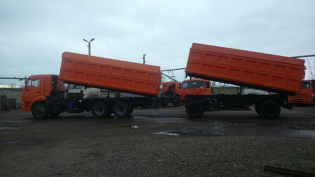 Зерновоз самосвал на базе шасси КАМАЗ 65117 с прицепом.